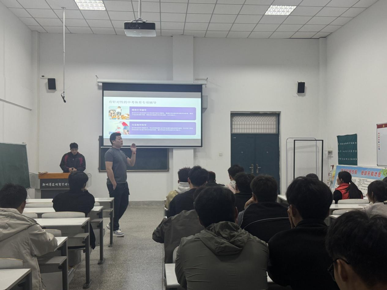 为精准对接体育专业人才培养与企业用人需求,帮助2026届毕业生规划职业路径、把握就业机遇,10 月 16 日,体育学院特邀2020届校友郑州生长力少儿运动馆创始人张金文,举办专场招聘宣讲会。学院就业工作负责人、毕业班辅导员及2026届社体毕业生共同参与此次招聘交流活动。