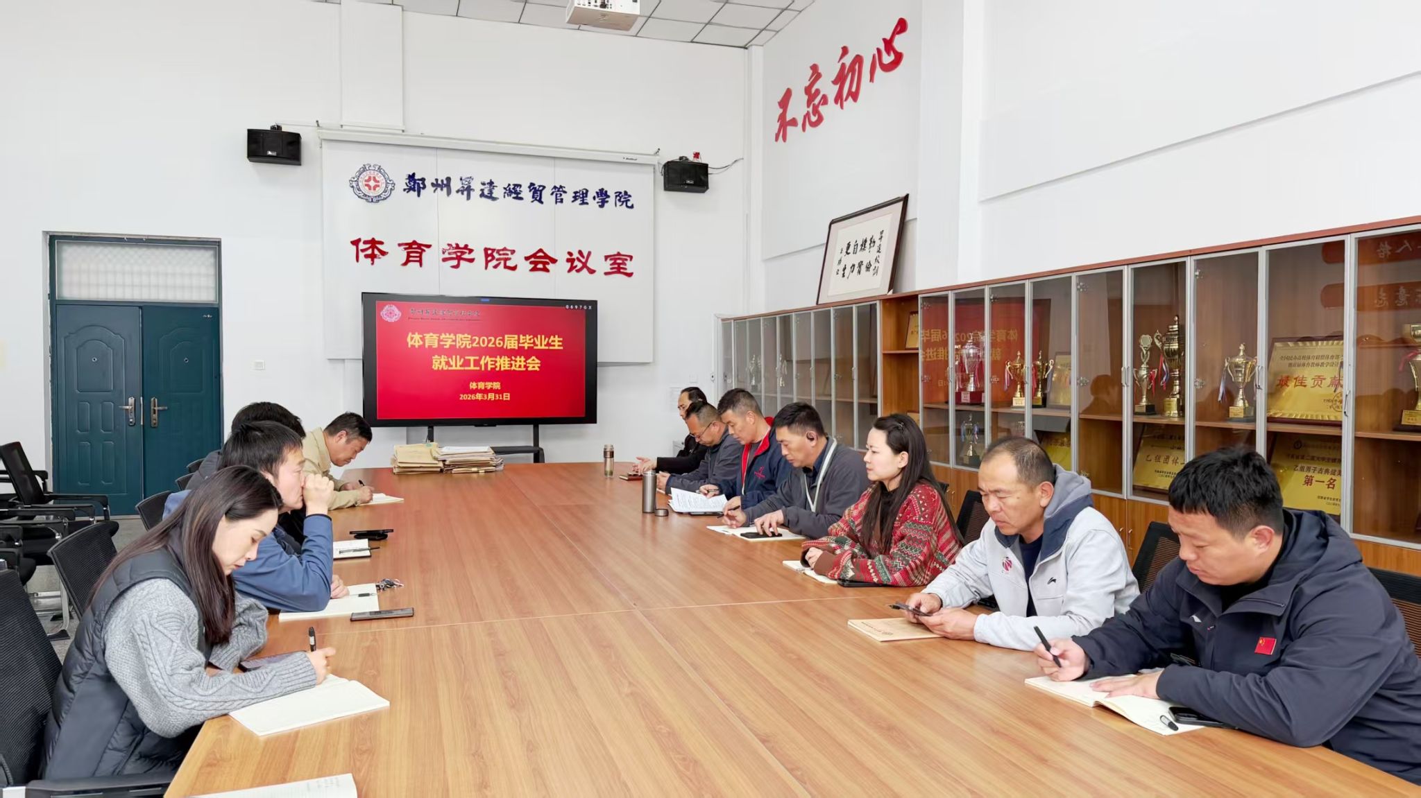 为深入贯彻落学校关于高校毕业生就业工作的部署要求,扎实推进2026届毕业生高质量充分就业,3月31日,体育学院召开2026届毕业生就业工作推进会。学院领导班子、各教研室主任及毕业班辅导员参加会议,会议由学院党委书记韩炎涛主持。