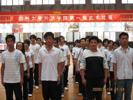 6月4日下午3时,我院首届武术比赛在体育馆篮球厅隆重举行。