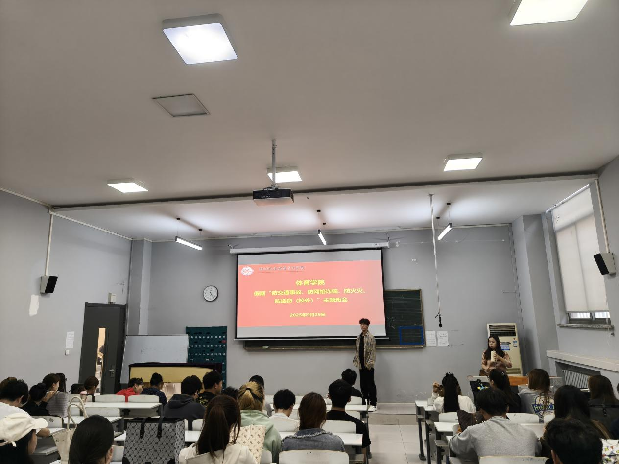 为进一步筑牢学生安全防护防线,提升学生安全防范意识与自我保护能力,近期,体育学院组织各班级陆续召开“防交通事故、防网络诈骗、防火灾、防盗窃(校外)” 主题班会,将安全教育落到实处,为学生成长保驾护航。