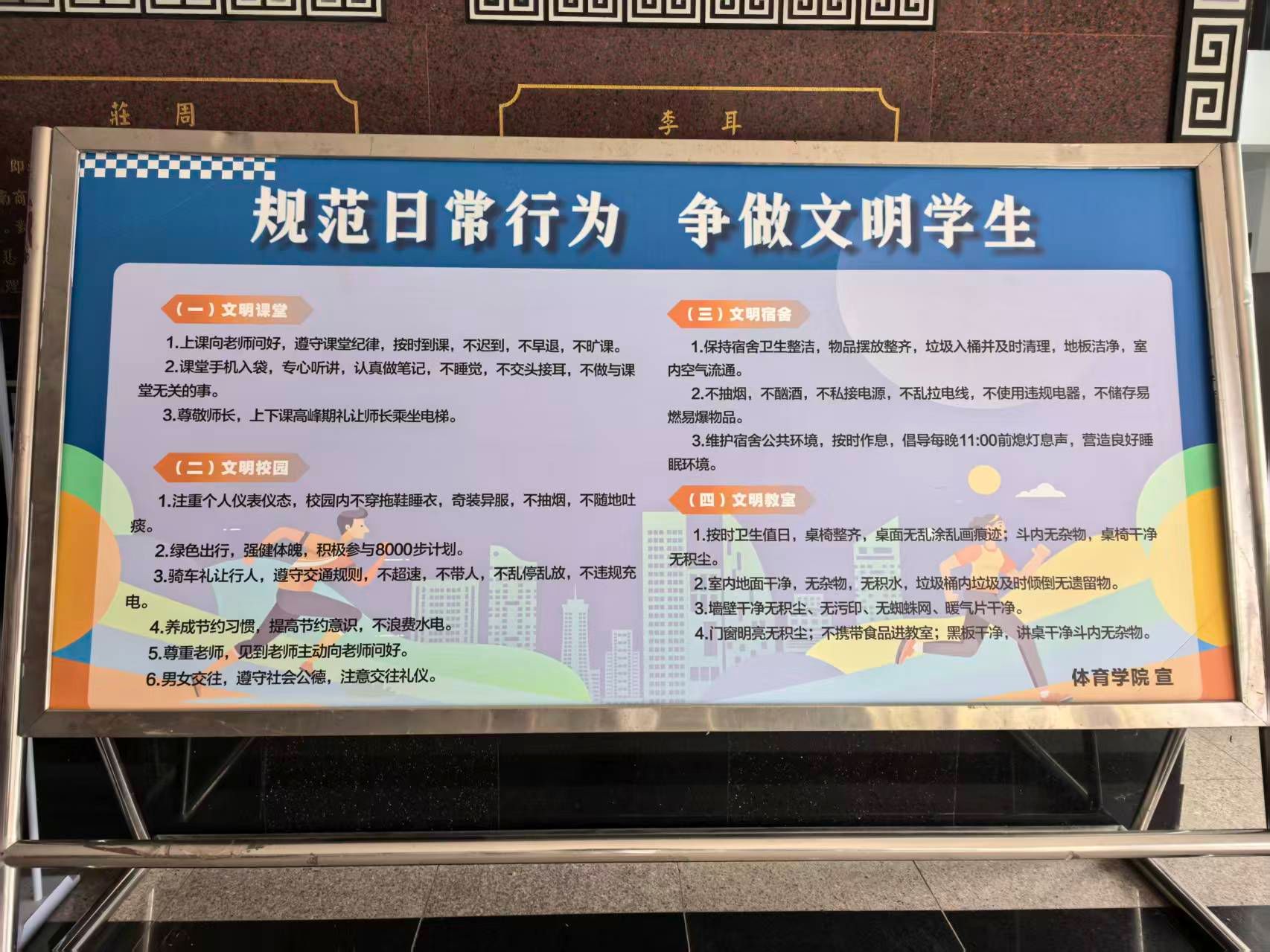 启动仪式后,体育学院各班也迅速响应,围绕“文明礼貌从日常做起”这一核心主题召开班会宣传动员,重点围绕文明课堂、文明校园、文明宿舍、文明教室四个方面开展。