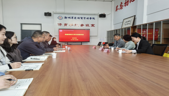 11月4日,韩国南部大学具珉处长等一行莅临体育学院进行考察交流,此次交流会在体育馆208会议室举行。国际交流处处长顿雁峰、体育学院院长张王利、党委书记韩炎涛、教学秘书王培培、院党委副书记高建涛、社体教研室主任李英豪以及教师代表热情接待了来访嘉宾,双方就教育合作、学术交流等议题展开了深入而友好的探讨。