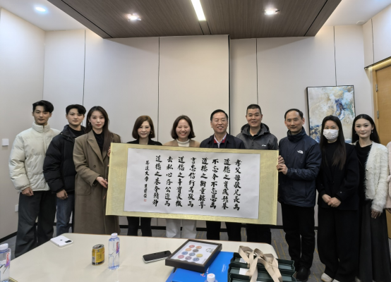 张金安代表学校向日新阅益公司赠送了创办人王广亚博士的书法作品和名誉董事长王淑芳的著作。他希望,双方以此次交流为契机持续深化校企合作,推进供需精准对接,不断为毕业生开拓更多优质就业创业岗位与机会,全力保障毕业生更加充分、更高质量就业。