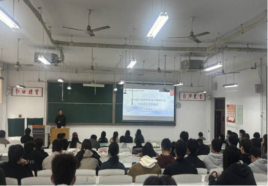 2025年11月11日,体育学院在时金楼108教室召开2026届社会体育指导与管理专业毕业论文工作会议。社体教研室主任李英豪、吴青霞老师以及2026届全体毕业生参加会议。