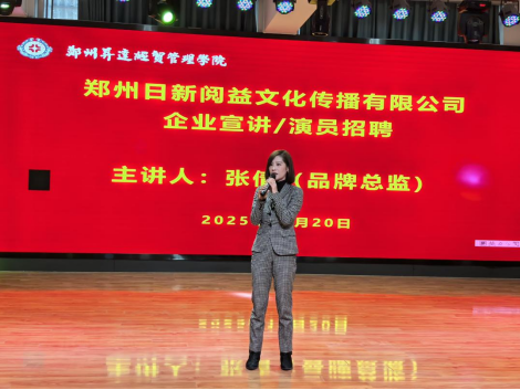 11月20日,体育学院举行了郑州日新阅益文化传播有限公司企业宣讲暨演员招聘活动,日新阅益品牌总监张倩一行来到我院进行企业宣讲和招聘。体育学院党委书记韩炎涛参加本次活动。