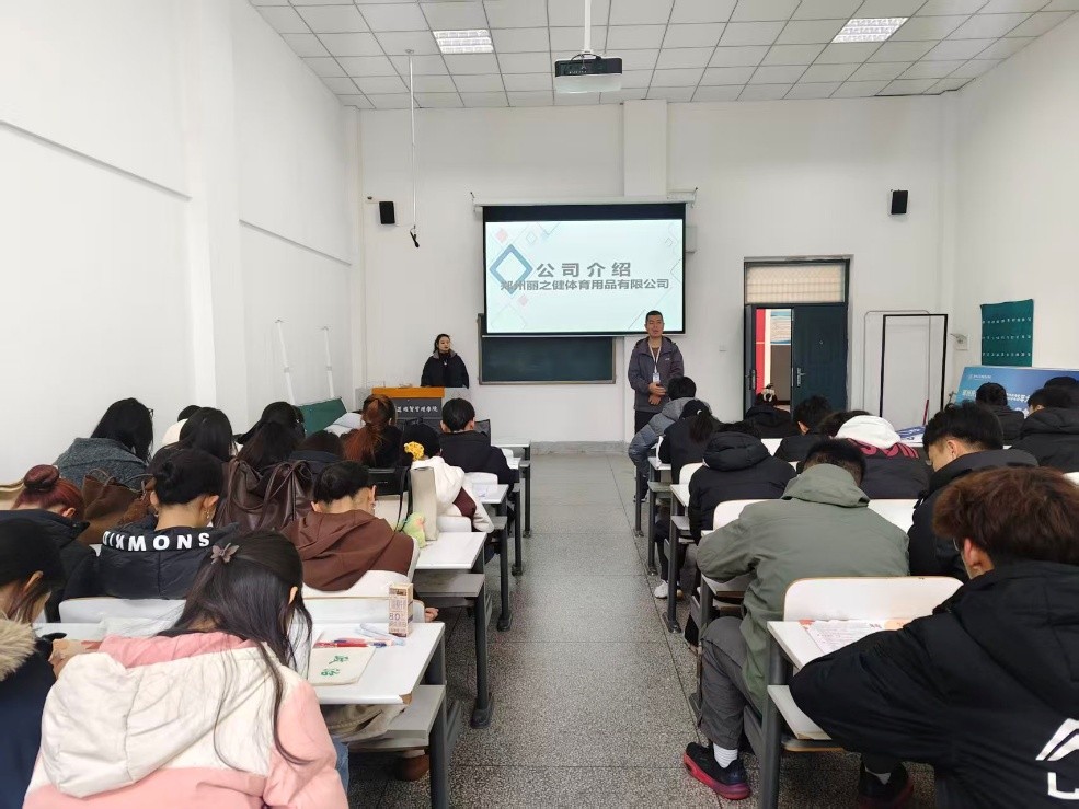 11月27日上午,体育学院在体育馆多媒体教室举办职业规划大赛辅导报告会,特别邀请郑州丽之健体育用品有限公司企业负责人李巧慧女士担任主讲嘉宾。体育学院党委书记韩炎涛,辅导员郭秋滟和学生代表60多人参加了报告会。