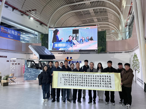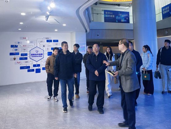在嗨购集团事业部部长杨宏伟的陪同下,张金安一行实地考察了集团位于郑州中大门的近4万平方米汽车品牌直播基地。通过参观综合办公区、企业文化展示中心及12个正在运行的专业直播间,调研团深入了解了企业在“无出镜讲解”汽车直播领域的创新模式、技术装备(如专业云台、智能灯光及数据监测系统)以及作为新华网汽车直播基地与40余家知名汽车品牌合作的产业实力。杨宏伟部长介绍,集团计划将直播团队规模扩展至万人,对具备综合素质的本科层次管理储备人才需求迫切,这与学校优化人才培养结构、对接市场需求的努力方向高度契合。