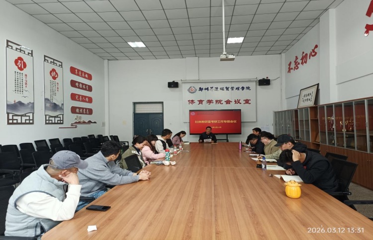 为切实做好2026 届毕业生考研复试指导与服务工作,3月12日社会体育指导与管理教研室召开考研工作专题会议,分析总结今年社体专业考研情况,并部署复试及入学帮扶工作,全体教师参会。