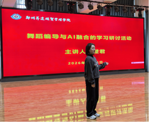 为抢抓数字艺术发展机遇,推动体育舞蹈专业教学改革与创作创新,3月26日,体育舞蹈教研室专项组织开展“舞蹈编导与AI融合”学习研讨活动,本次活动由教研室楚君老师主讲,教研室全体教师全程参与,围绕技术赋能艺术创作的核心议题展开深度交流。