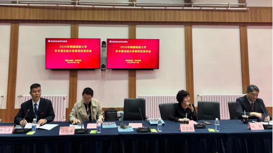 4月16日下午,2026年韩国南部大学冬令营总结分享暨国际交流项目宣讲会在国际会议厅圆满举行。韩国南部大学对外合作处处长具珉、语言学院院长金恩福,学校国际交流处处长顿雁峰、体育学院党委书记韩炎涛、体育学院教学秘书王培培等出席活动,体育学院师生及冬令营营员代表共同参与。会议由体育学院党委书记韩炎涛主持。